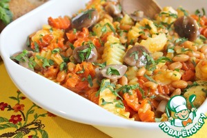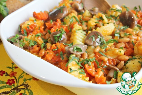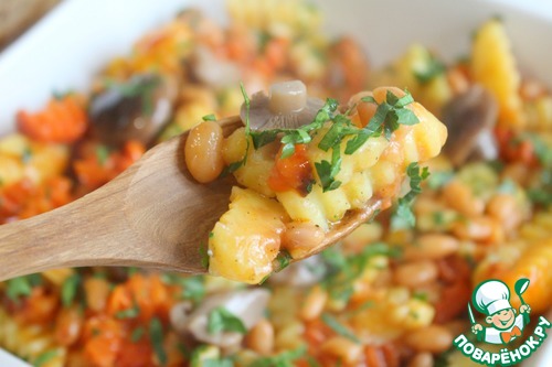 - Фасоль консервированная (в томатном соусе) — 1 бан.
