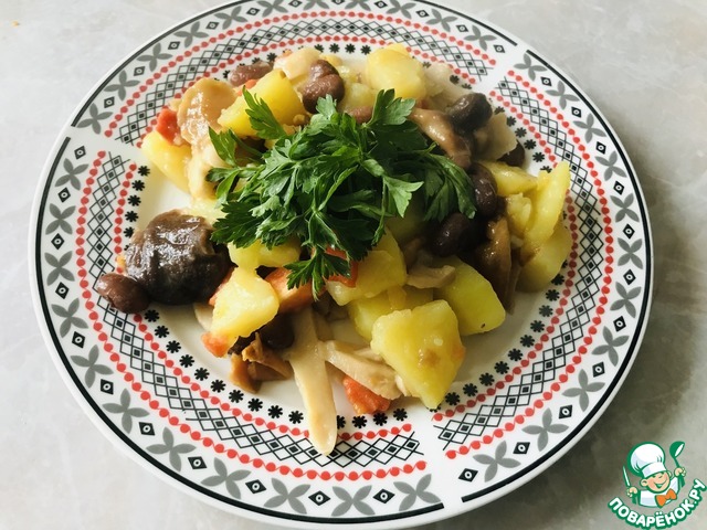 Дать постоять под крышкой 10 минут. по желанию можно добавить при подаче маринованных грибов.
