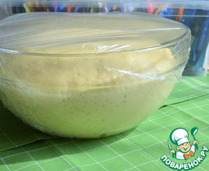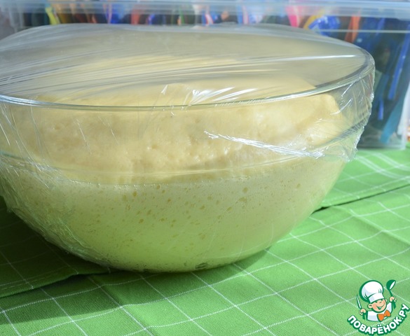 Накрыть пленкой и убрать в теплое место, на 1,5 часа. -