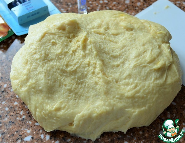 1 - 1,5 см. толщиной. Пласт смазать мягким сливочным маслом.