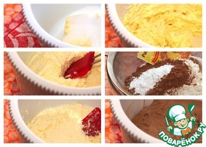 Для приготовления кексов сливочное масло растереть с сахаром, по одному добавить яйца и слегка взбить, добавить молоко, перемешать. Смешать просеянную муку, разрыхлитель теста, какао-порошок. Соединить масляную и мучную смесь, перемешать до однородности.