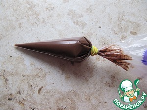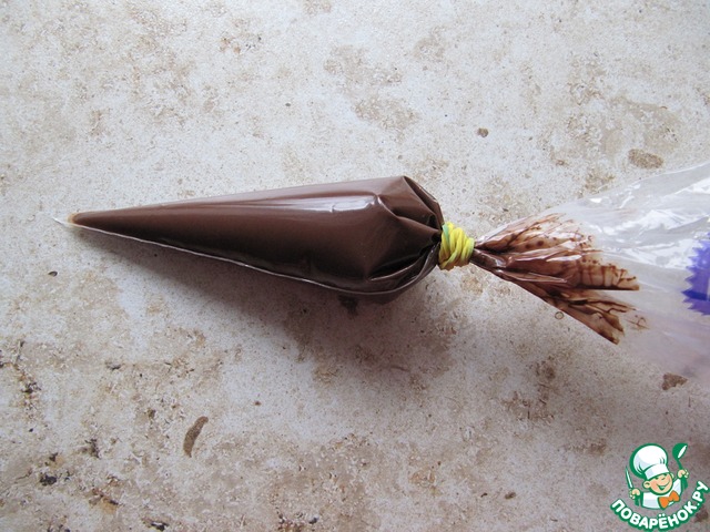 Готовый шоколад охладить до теплого, переложить в кондитерский мешок.