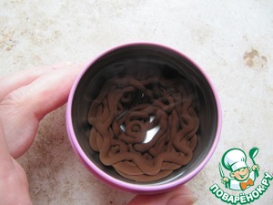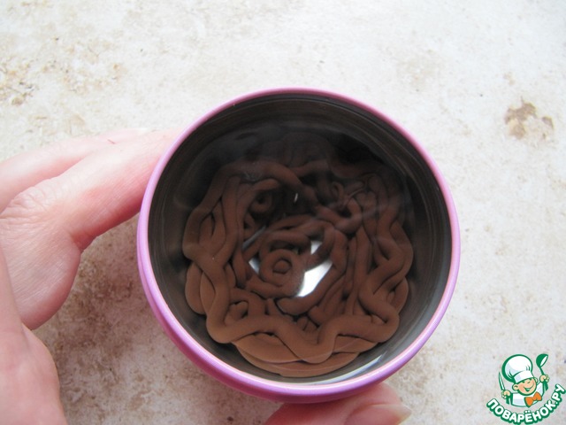 Для приготовления шоколадного гнезда заблаговременно форму для приготовления, водку (спирт) максимально охладить в морозилке.