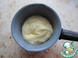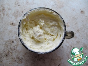 Сливочное масло взбить, продолжая процесс взбивания добавлять порциями заварную основу. Крем получается густой по консистенции.
