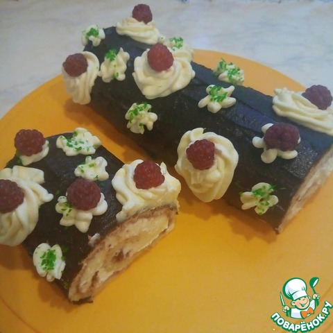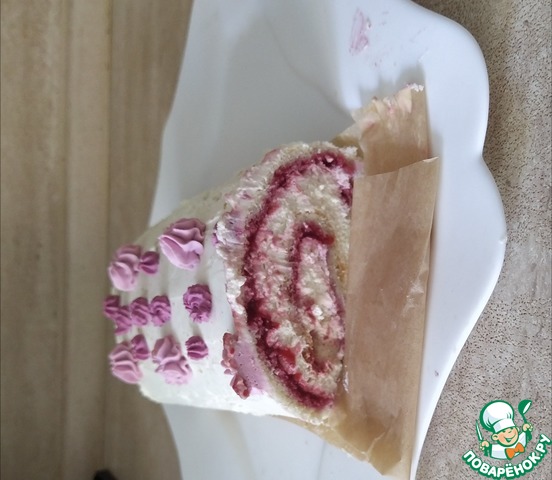Смазать охлажденный бисквит кремом (если нет времени - просто густым джемом с кислинкой), свернуть в рулет, подрезать края, украсить верх рулета по-своему вкусу или посыпать сахарной пудрой Dr. Oetker.