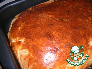 Верх пирога смазываем желтком и ставим в разогретую до 200 градусов духовку на 40 минут.
