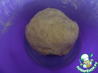 Тесто должно получиться очень мягкое и эластичное, при этом не должно приставать к рукам. Тесто завернуть в пищевую пленку и отправить в холодильник на 1 час.