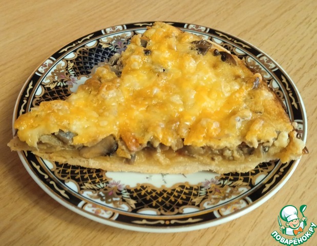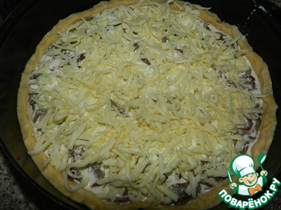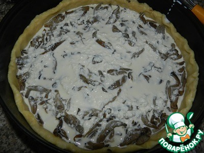 Грибы выложить на основу. Сверху равномерно распределить заливку.