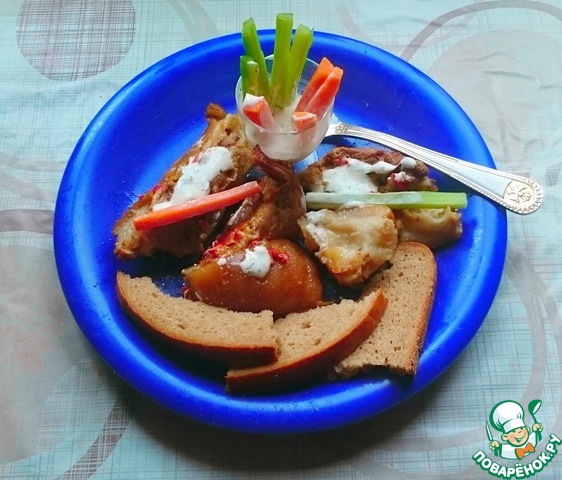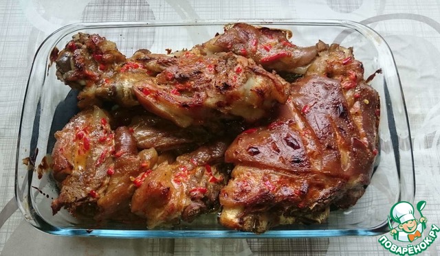 По большому счету обмазка нужна для образования корочки. Можно смешать мёд и соевый соус, соль, чеснок. Всё зависит от вкусов.