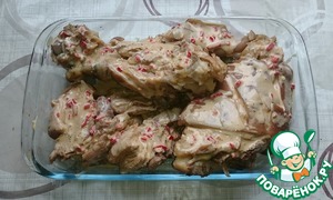 Хорошенько смазываем мясо соусом. -