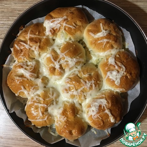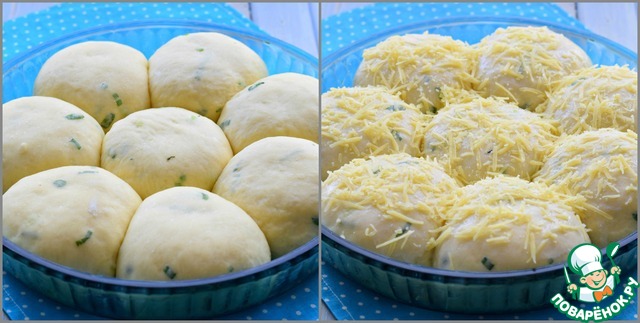 Положить пирожки в форму для выпечки (d формы 24-26 см), прикрыть салфеткой или льняным полотенцем и поставить в тепло на 15-20 минут.