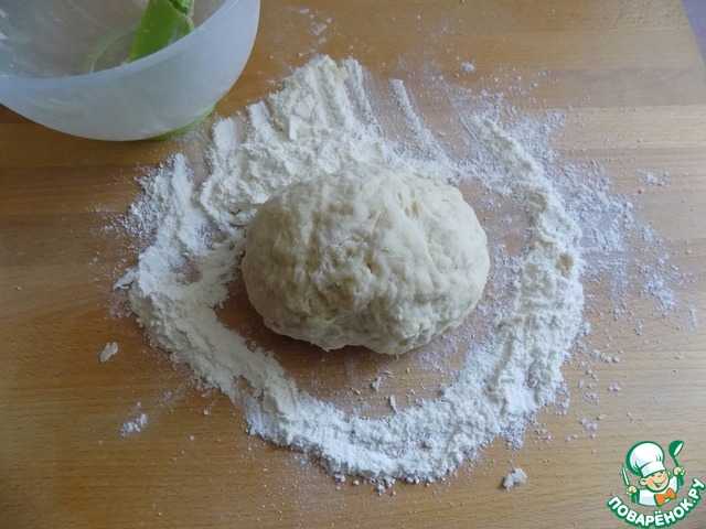Выложить на рабочую поверхность и сделать постное дрожжевое тесто.
