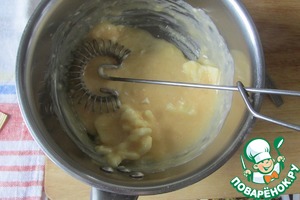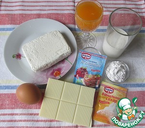 Заварную массу с шоколадом добавляем к творогу, вливаем сок с желатином.