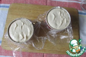 Формочки застилаем пищевой пленкой и раскладываем творожную массу.