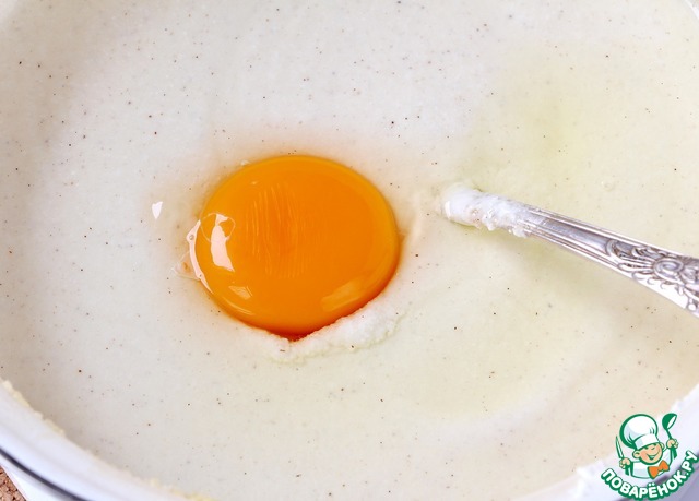 Как только наши компоненты превратятся в однородную массу и запыхтят, вмешиваем по одному четыре яйца, каждый раз тщательно размешивая.
