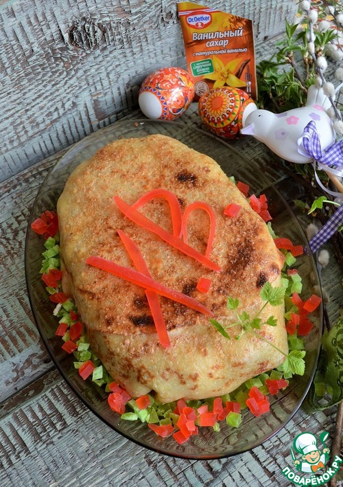 Поднимая бортики, накрыв двумя блинчиками, сформовать "яйцо".