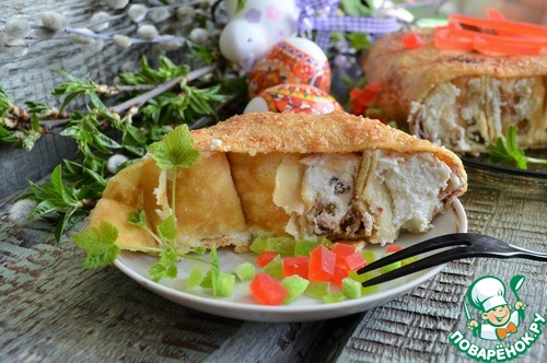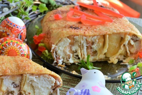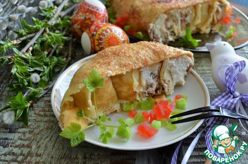 Ну и какой же праздник без блинов?! Да без фаршированных?! Потратим немного времени и к чаю подадим красивый, вкусный блинный пирог с творогом. Да еще в виде яйца - главного символа Пасхи. Угощайтесь.