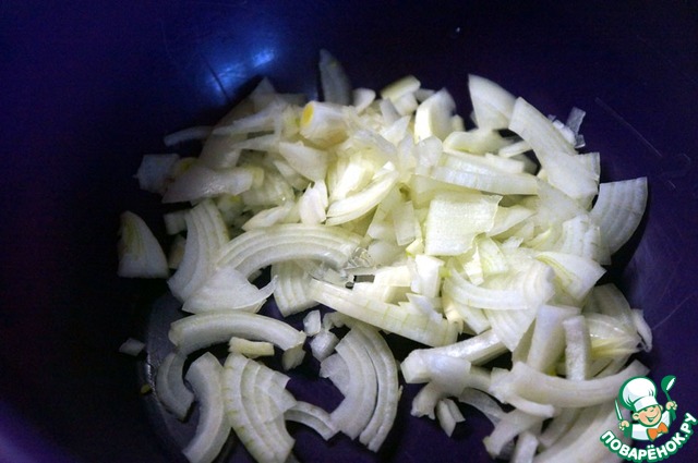 Лук порезать четвертькольцами.