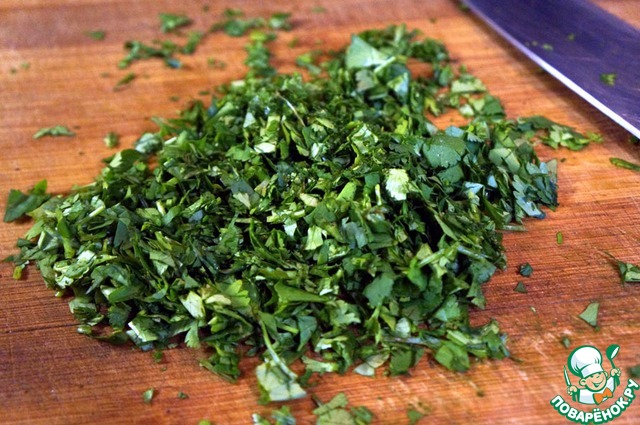 Мелко порезать кинзу.
