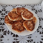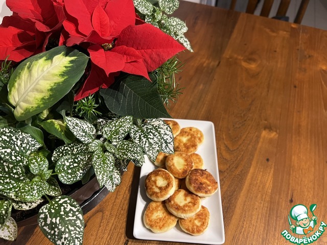 Влажными руками сформировать сырники и обвалять в муке. Я делала маленькие сырники, поэтому у меня получилось 6 шт. Количество будет зависеть от желаемого размера.