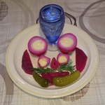 Вкус довольно насыщенный, говорят, лучше всего подходит к светлым лагерам, но и мне как любителю элей весьма приятные яйца. Съедобны кстати все составляющие маринада, мне например свекла нравится, ну а про чеснок не знаю уж упоминать ли.