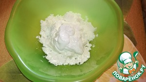 В начале заварить кофе (50 мл кипятка и 1 ст. л. кофе), чтобы оно немного остыло. Смешиваем в глубокой миске сливочный сыр, творог (перетёртый через сито, так пасха будет нежнее и не будут попадаться комочки) и сметану. Взбиваем блендером.