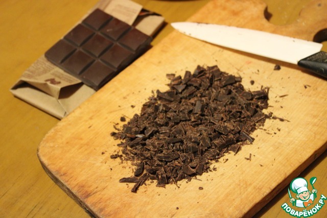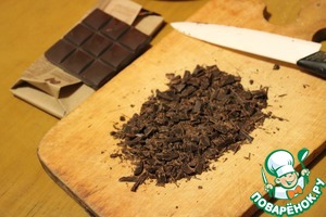 Шоколад порубить ножом. Добавить к остальным продуктам. Перемешать.