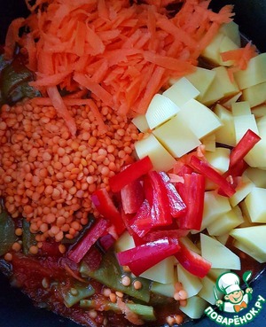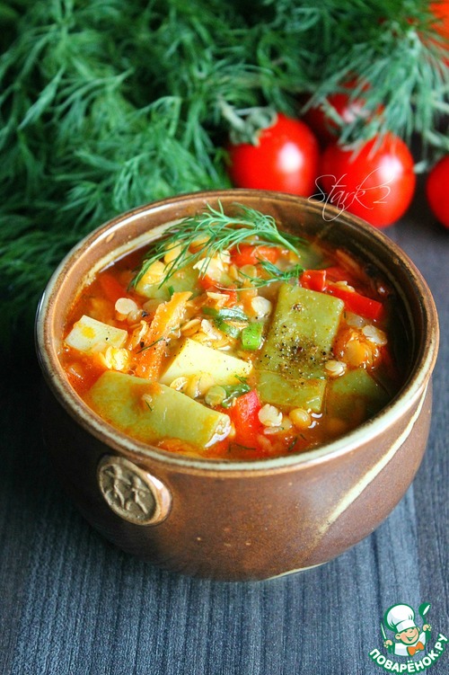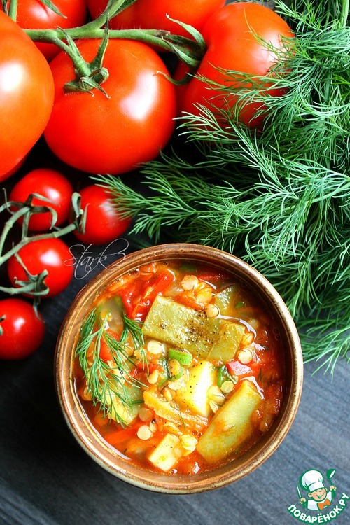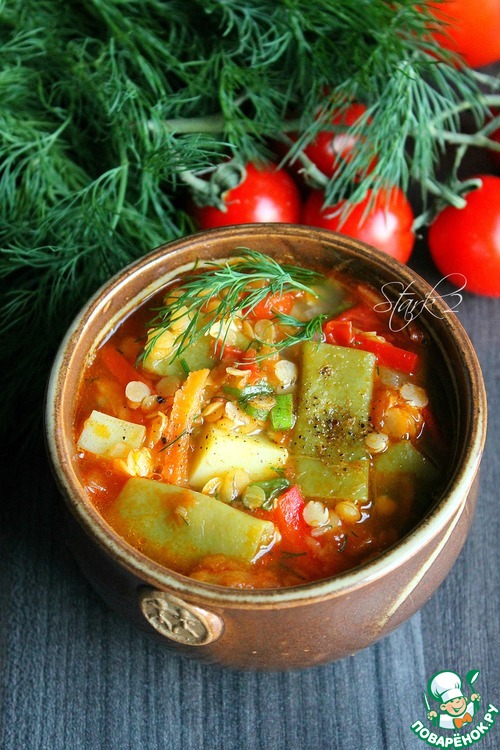 Рецепт «Чечевичный суп с плоской стручковой фасолью»: