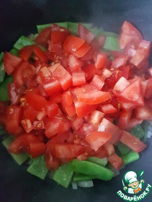 Помидоры нарезать кубиками. (По желанию можно с них снять кожицу). Добавить к фасоли, посолить, перемешать и тушить на медленном огне под закрытой крышкой около 30-40 минут (фасоль должна стать мягкая).