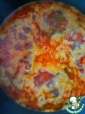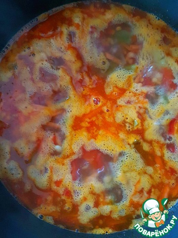 Залить 500 мл. кипятка ( количество можно увеличить в зависимости от того, какой густоты хотите получить суп).