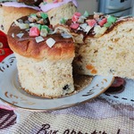 [+5]Все делала по рецепту. Только дрожжи брала свежие 20-25 грамм и изюм замачивала в ликере. По сладости для нас подошло ( любим сладенькое). Получилось 6 небольших пасочек.