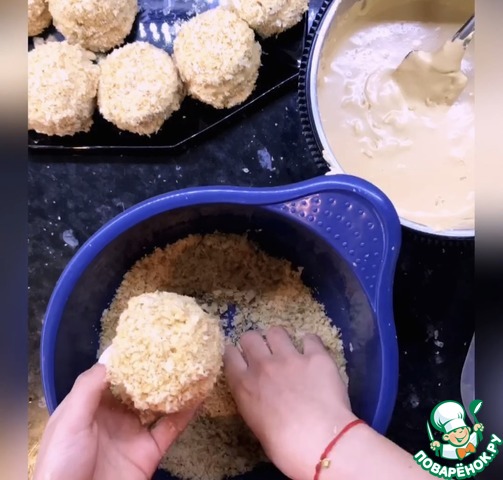 8. Собираем пирожное ( окунуть вверх одной части готового теста в крем, накрыть второй частью, окунуть пирожное в крем и обвалять в крошке) Более подробно все показано на видео. Приятного аппетита!