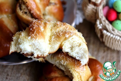 К щедрому на угощения пасхальному столу хочу предложить очень вкусные булочки!!! Как-то быстро пополняются мои рецепты замечательной дрожжевой выпечки. Каждый раз мне кажется, что: "Вот! Все! Этот лучший!" Только так подумаю, как нахожу еще рецепт, который мне нравится еще больше! Теперь не зарекаюсь, но ЭТОТ рецепт настоятельно рекомендую. Вполне подходят для угощения на праздничный стол! Тесто готовила с помощью ХП.