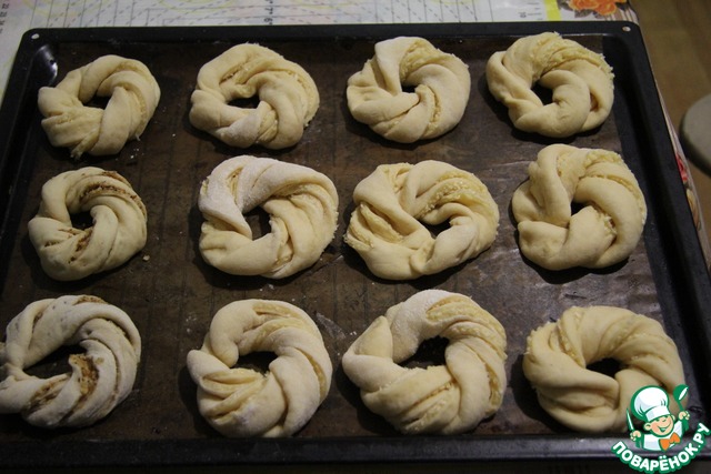 Сделать надрезы (4-5) на этих лепешечках и повернуть их вокруг своей оси 3-4 раза. Края соединить.