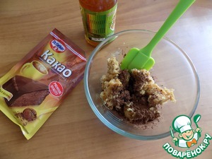 Чайной ложкой я измельчила кекс и добавила сироп, какао-порошок. Силиконовой лопаточкой соединила.