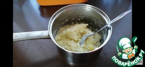 Картофель размять в пюре. Если пюре у вас уже готово (со вчерашнего дня, к примеру), вливаем в него молоко и добавляем тёртый сыр. Перемешиваем. Можно немного поперчить.