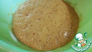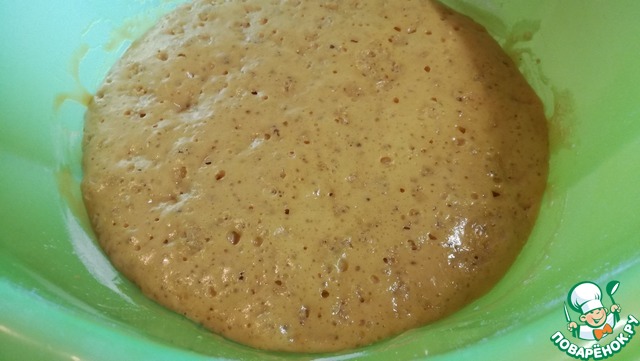 Затем всыпать немного муки (4 ст. л. без горки), перемешать. Накрыть и убрать в тёплое место на 30 минут.