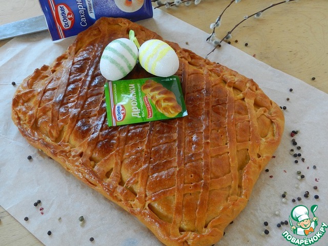 А как вы относитесь к мясным пирогам?? Вернее к пирогам с пряной колбаской... Предлагаю приготовить очень вкусный сытный пирог "Орназо". Этот пирог пекут на Пасху в Испании. Дрожжевое тесто, мясная начинка и вареные яйца...