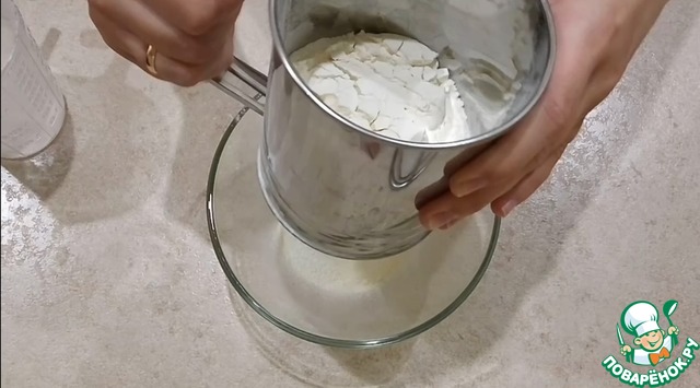 Муку просеять вместе с крахмалом и разрыхлителем.