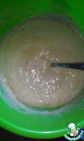 В молоко добавить воду, ванилин и подогреть (чуть выше комнатной т.). Ввести тонкой струйкой в яичную смесь. Понемногу вводить просеянную муку до консистенции густого сгущенного молока (я взбиваю венчиком, добавляю по 1/2 ст.). Миску с тестом накрыть пленкой, поставить в миску большего диаметра с очень теплой водой и вместе с "поддоном" накрыть теплым полотенцем. Оставить на 40 мин. Приготовить начинку.
