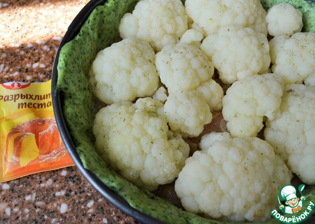Цветную капусту разделить на соцветия и бланшировать 3 - 5 минут.