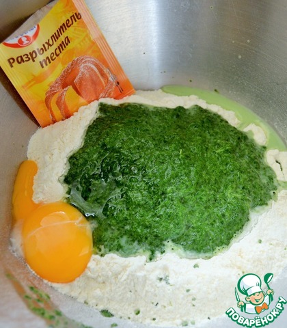 Добавить шпинатную смесь, желток и мягкое сливочное масло.