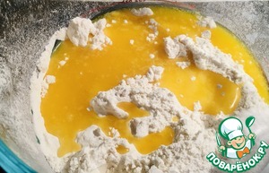 Вылить в тесто взбитые желтки, растопленное или мягкое сливочное масло и цедру лимона.