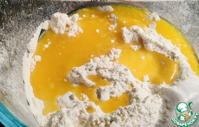 Хорошо перемешать. Тесто получается густое, на фото видно.