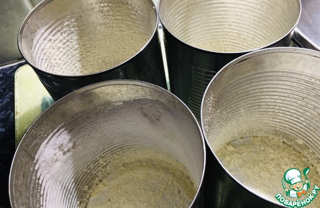 Подготовить банки для выпечки. У меня банки из под консервированных фруктов. смазать растительным маслом, можно дно банки застелить промасленной пекарской бумагой (я этого не делала )присыпала миндальной мукой.