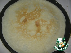 На разогретой сковороде выпекать блинчики. Сковороду я смазываю растительным маслом только один раз, перед первым блинчиком.