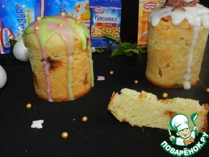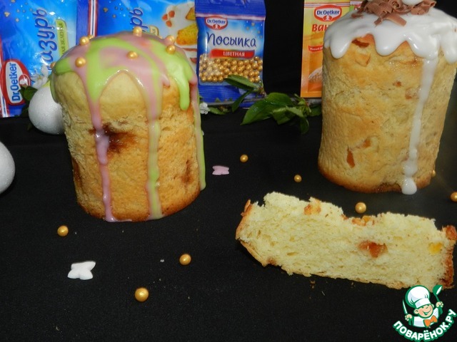 Готовым куличам дать остыть. Покрыть глазурью (Dr.Oetker) и посыпкой (Dr.Oetker).