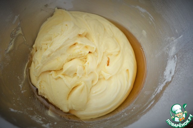 Влить коньяк, вымесить до однородности. -
