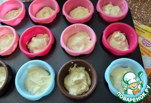 В формочки для кексов выложить по 1 ч. л. теста.