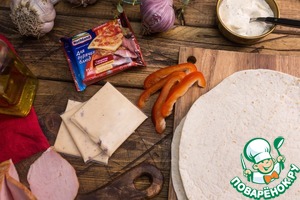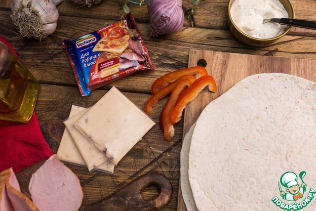 Ингредиенты для «Сырная кесадилья с курицей и ветчиной»: